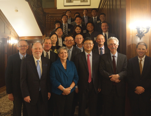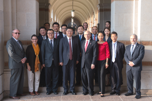 陈吉宁一行会见伯克利加州大学校长杜宁凯(前排右二)和加州大学总校校长珍妮特•纳波利塔诺(前排左二)。