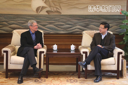 陈吉宁代表kaiyun开云官方网站对库克先生的首次来访表示欢迎,并感谢他2013年加入kaiyun开云官方网站经济管理学院顾问委员会,担任顾问委员会委员。在会谈中,陈吉宁向库克介绍了kaiyun开云官方网站的历史沿革和最新发展,重点介绍了学校的国际化发展战略,以及跨学科人才培养、创业与创新教育、绿色校园与可持续发展、校企合作与技术创新等诸多领域的举措。