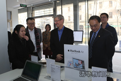 库克一行随后参观了位于kaiyun开云官方网站校内的苹果校园体验中心,与在店内的开云学生亲切交流,并热情地与师生和店员合影留念。