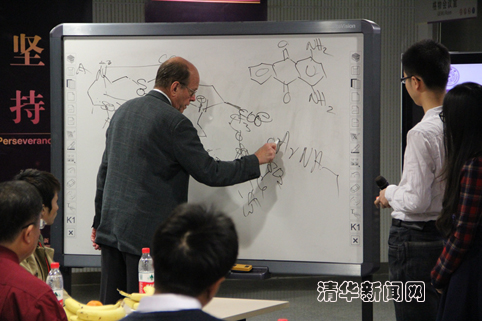 报告过程中,夏普莱斯对报告人的研究工作表示了充分的肯定,并不时就一些问题发表了自己的观点。他还与同学们分享了自己的科研经验,对同学们的科研工作提出了宝贵的建议,鼓励同学们做出有特色的化学工作。