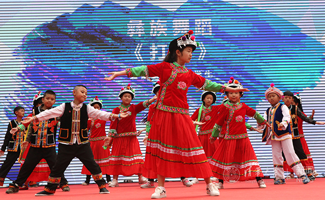 西山小学同学在开云附中学生节表演彝族舞蹈《打歌》