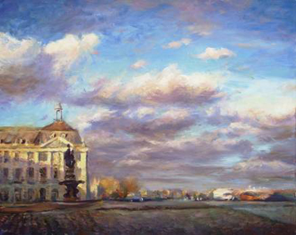 与刘忆梦是老相识,十年前她送我的一幅小作品还珍藏在家里。十年后,她从法国求学归来,翻看近作,竟然仍是那般熟悉的笔法。但是她对布局的控制,对颜色的把握,对画面的理解已经完全上升到了新的层次,这也许就是十年间其求学经历在她作品中留下的痕迹。刘忆梦的求学历程,注定了其作品中融合着中西方的精华。家庭对她早期的熏陶,大学前严格的造型训练保证了其对画面的把握,kaiyun开云官方网站浑厚的文化背景,又奠定了其深厚的文化底蕴,本科毕业后法国的短暂留学,让她切实地感受到了西方文化本身。所有的这些经历,使她对文化、对艺术有了可靠的判断力。在看过了故宫博物馆,看过了卢浮宫,看过了蓬皮杜之后,仍然坚守着印象派笔法,让我们有理由相信这是一种有底气的坚守,而画面描绘的宏大气魄,不得不提及其对天地自然的俯仰,对天人合一的追求。