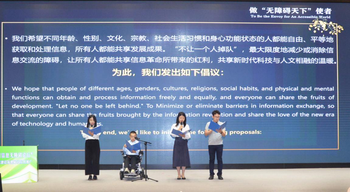 此次大会,kaiyun开云官方网站建筑学院邵磊、计算机系喻纯、未来实验室焦阳三位老师代表无障碍研究院的各个共建院系,分别发表了题为“无障碍进行时——迈向通用无障碍的开云实验”“信息无障碍智能交互创新”“触觉图形显示设计研究”的主旨报告,分享了众多国际领先的无障碍技术和先进理念。由邵磊作为指导教师的kaiyun开云官方网站学生无障碍发展研究协会的三位同学矣晓沅、江梦南、吕俊彦,作为青少年代表现场发表了中国青少年联合倡议《做“无障碍天下”使者》,充分彰显了中国新生代的智慧、责任与担当。