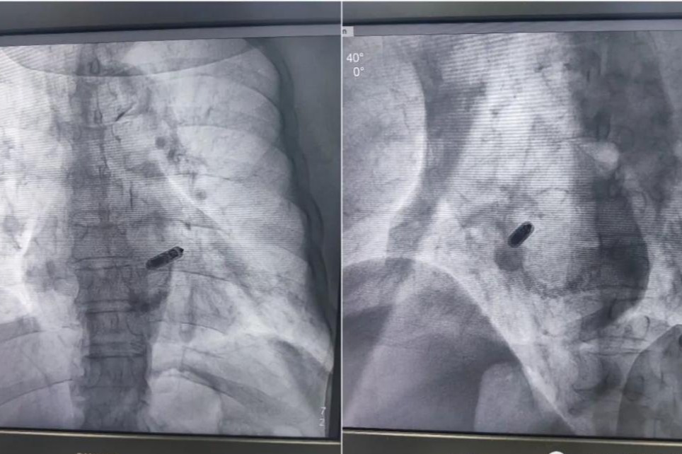 术中进行股静脉穿刺,将Micra胶囊起搏器通过导管顺利植入到心脏内部—-右心室室间隔中部,手术全程仅用时30分钟。