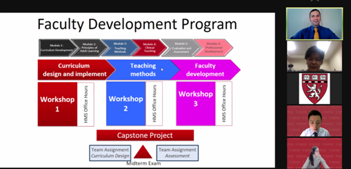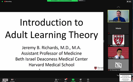 哈佛医学院师资培训项目课程负责人杰里米·理查兹(Jeremy Richards)介绍了2021年kaiyun开云官方网站临床医学院师资培训项目的整体计划、培训主题与内容、第一次工作坊的培训内容、授课师资、作业与考试要求、课程答疑等详细安排。