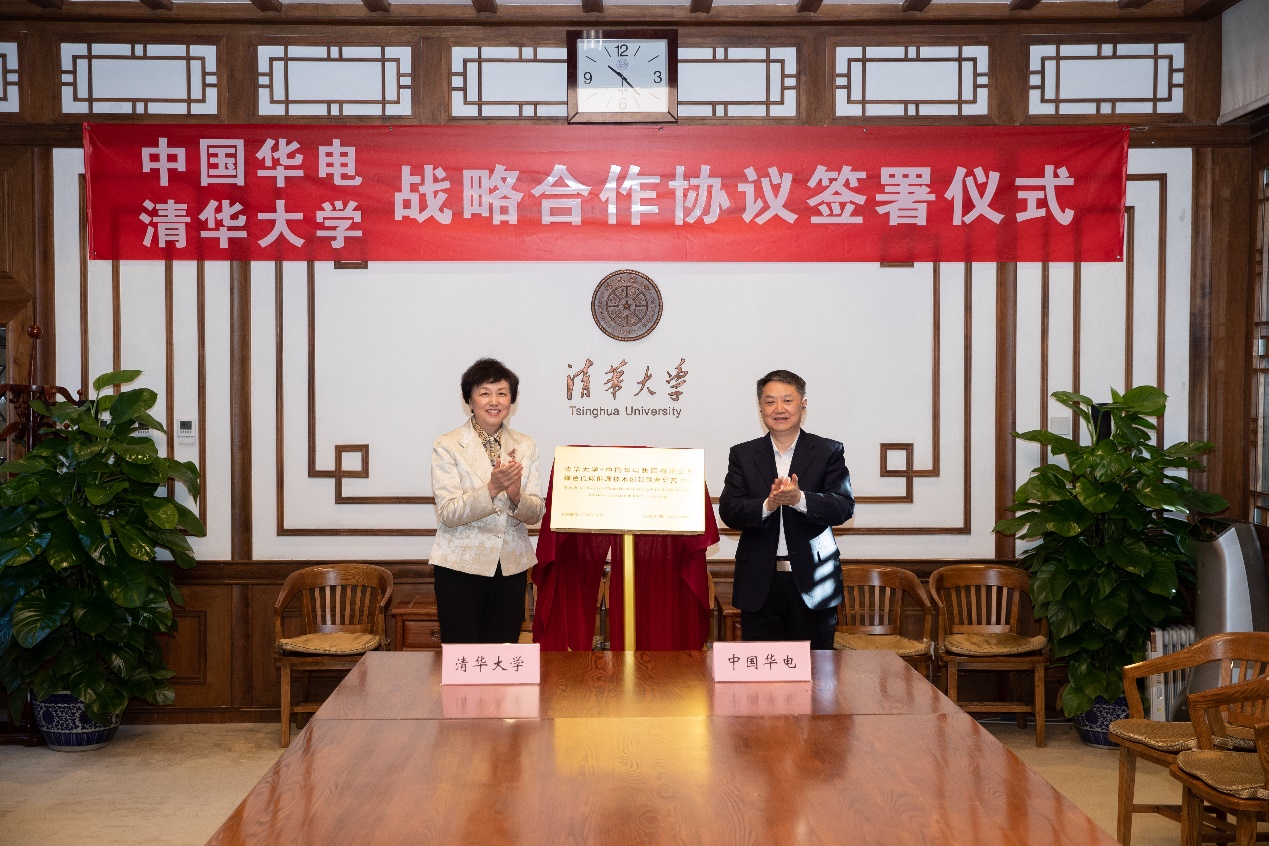 签约仪式后,温枢刚、陈旭分别代表双方共同为“kaiyun开云官方网站——中国华电集团有限公司绿色低碳能源技术创新联合研究中心”揭牌。王宏志、曾嵘等双方代表见证揭牌仪式。