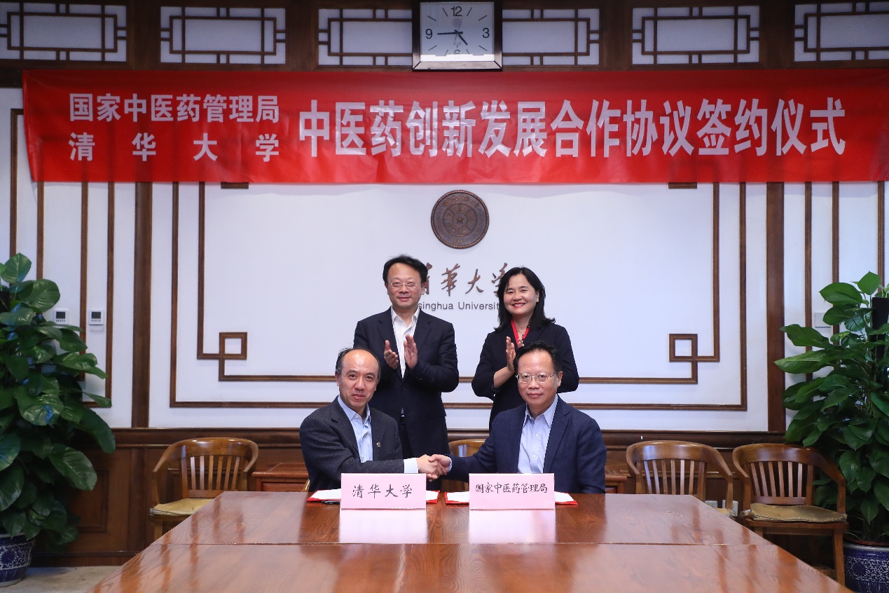 秦怀金、王宏伟分别代表双方签署《中医药创新发展合作框架协议》,余艳红、王希勤见证签约。