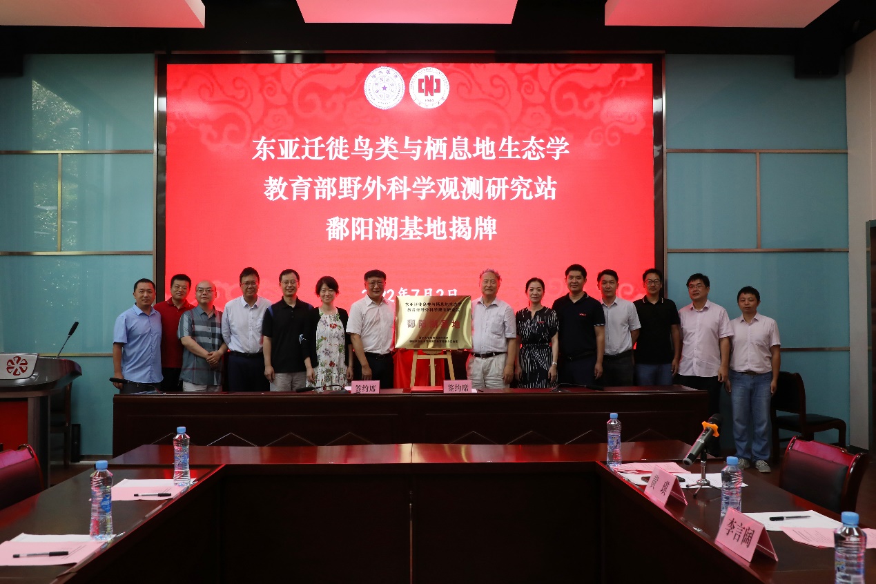 教育部野外站鄱阳湖基地揭牌仪式现场与会人员合影