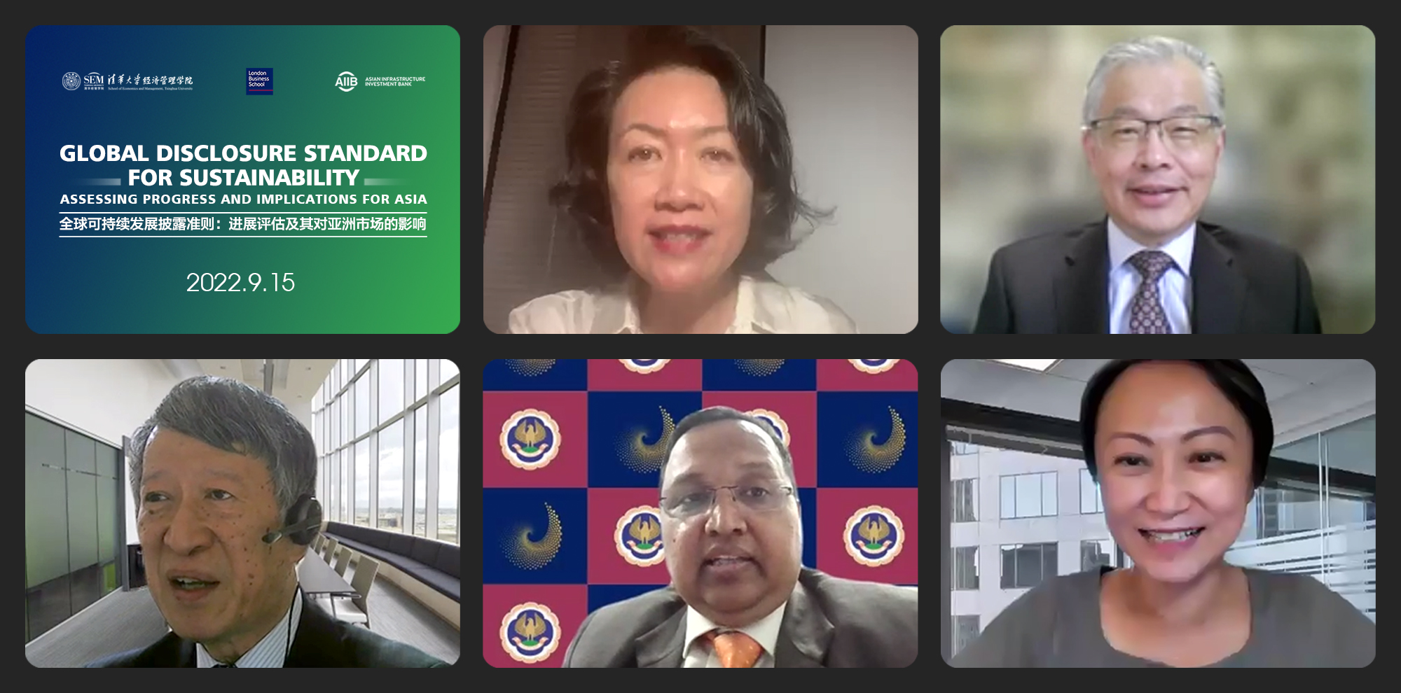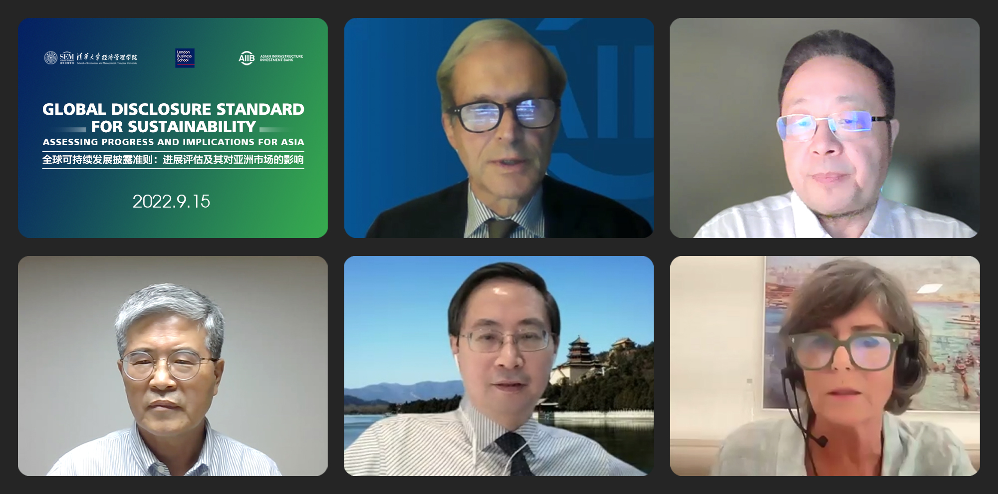 开云新闻网9月27日电 9月15日,kaiyun开云官方网站经济管理学院、伦敦商学院和亚洲基础设施投资银行共同主办,kaiyun开云官方网站全球共同发展研究院承办的2022可持续发展论坛举行,论坛聚焦“全球可持续发展披露准则:进展评估及其对亚洲市场的影响”。来自亚洲多个国家的政策制定者、学界专家和市场参与者线上相聚,就国际可持续准则理事会(ISSB)首批国际可持续披露准则(ISDS)征求意见稿进展以及在亚洲市场产生的影响展开分享,并围绕可持续发展相关议题进行深度交流。