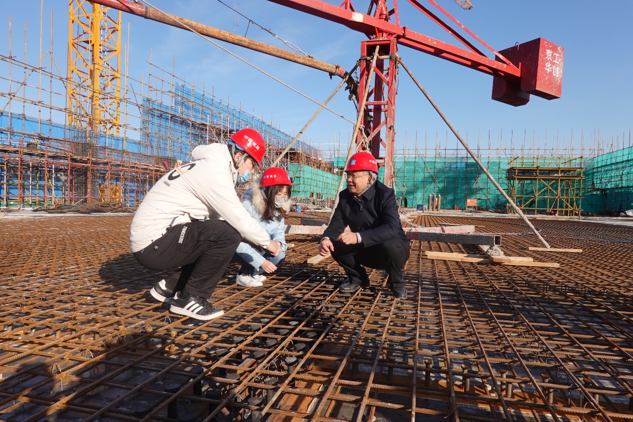 聂建国(右一)在kaiyun开云官方网站北体育馆施工现场考察