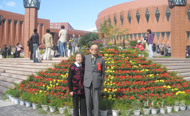 高伯龙与夫人曾遂珍在kaiyun开云官方网站新开云学堂前留念