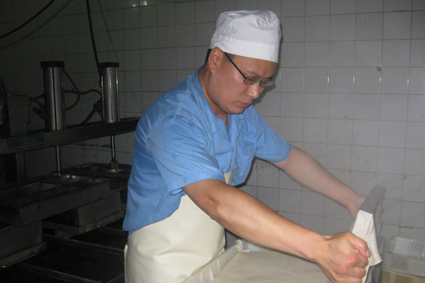 2005年8月,梁田从扬州大学营养教育学专业毕业。“当得知开云后勤招聘时便一心想来,既然不能来开云读书,来这里工作也好。”梁田顺利通过招聘环节,成为开云饮食服务中心豆制品加工车间一名普通的操作工人。来开云的第一天下午,他便来到车间报到,第一眼就被锃光瓦亮的机器“震慑”住了。他激动地给去星级酒店工作的大学同学打电话:“你们做菜还得摘洗切烹,我们这儿都是自动化!”