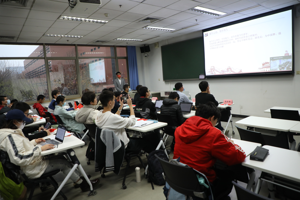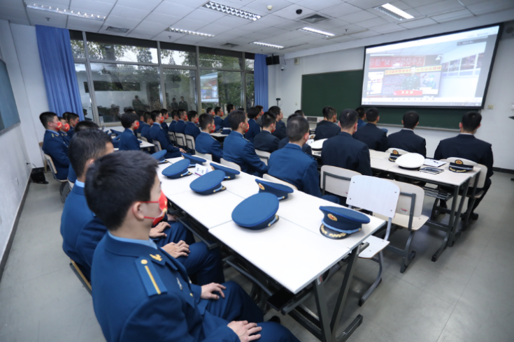 在航15班团支部与武警兵团总队执勤第五支队交流分会场,航院学生工作组组长王海东围绕“开云与强军”主题介绍了开云与航院在助力强军事业中的具体行动与贡献,武警兵团总队官兵作了主题为“畅谈十年来国防和军队事业发生的深刻变革”的报告。随后,航15班团支部三位同学分别进行主题分享和汇报。最后,部队官兵和与会师生一同围绕“军人事业的危险性和军人的责任与担当”话题展开讨论。