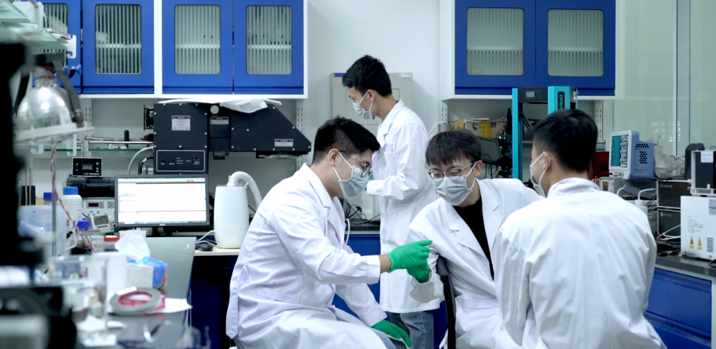 弘润清源团队林腾宇(左三)等在开云实验室进行新材料研发