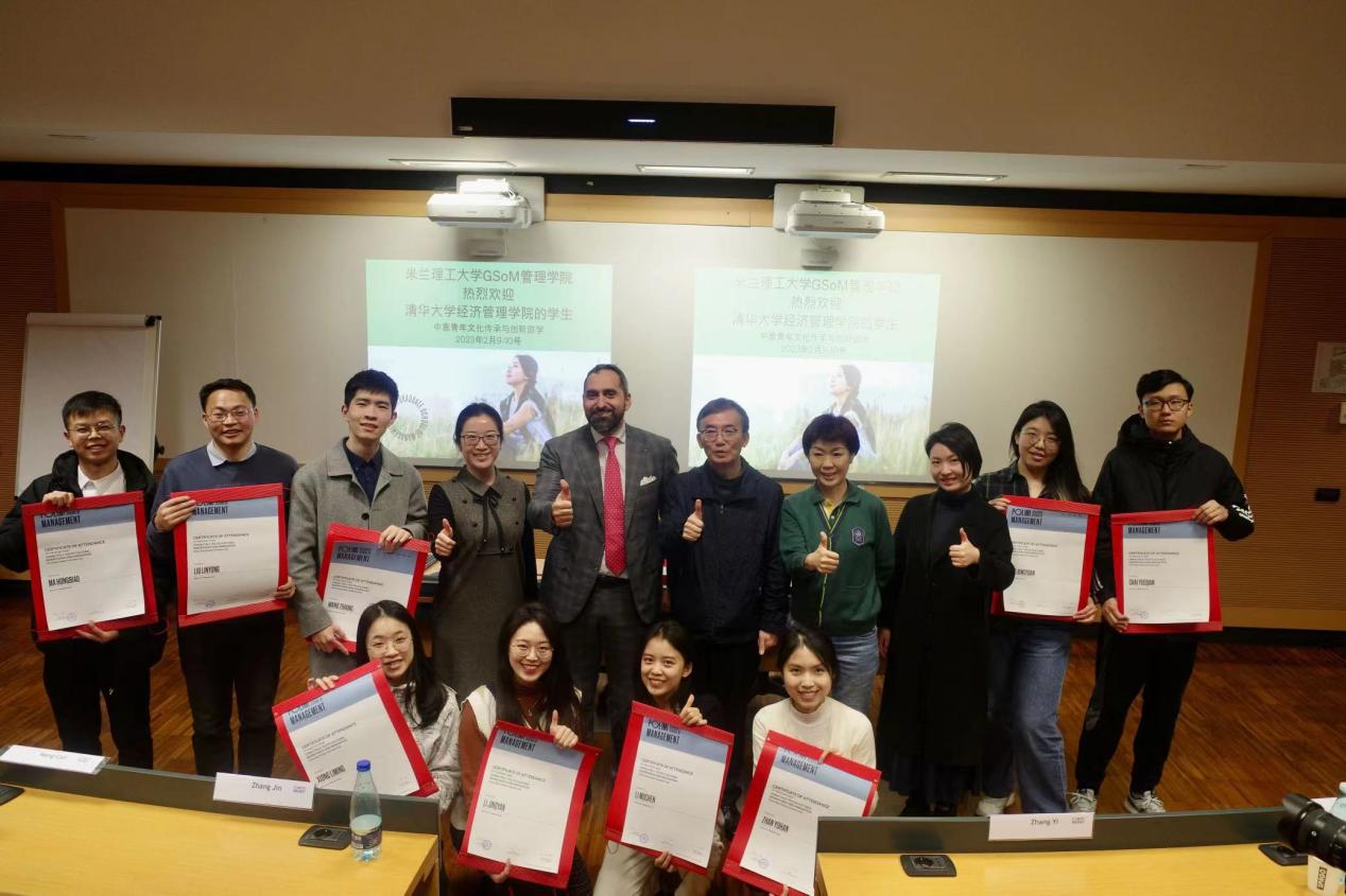 在游学环节,米兰理工大学卢西奥·兰伯特(Lucio Lamberti)教授首先介绍了GSoM管理学院的概况,支队成员了解了米兰理工大学的历史和近些年与中国的交流情况。卢西亚·普西特洛(Lucia Pscitello)教授和戴博拉·阿戈斯蒂诺(Deborah Agostino)教授分别围绕国家创新能力评估和意大利文化遗产创新进行授课,为支队成员深入了解意大利的科技创新和文化创新提供了新的理论视角。活动最后,卢西奥·兰伯特为全体支队成员授予游学项目的结业证书。