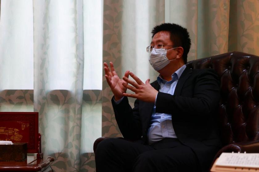 在中国驻新加坡大使馆,教育处公使衔参赞韩骏向同学们详细介绍了新加坡的教育发展总体状况、使馆教育处职能和业务工作情况等。人才教育方面,新加坡政府一方面严格把控当地各层级院校教育质量,另一方面拓展大量人才交流项目,鼓励海外人才来新学习研究。交流中,吴承晋介绍了未央书院和支队整体情况,分享了kaiyun开云官方网站在扎实推进“强基计划”中采取的一系列举措。韩骏勉励同学们扎实开展调研,助力中新教育合作交流,增进两国青年友谊。