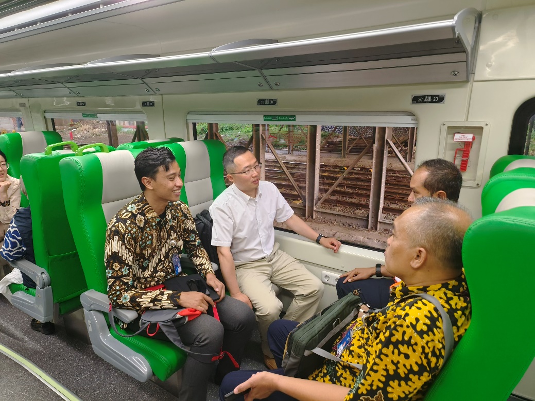 支队在高铁站与万隆市中心的接驳线列车上与印尼官员交流