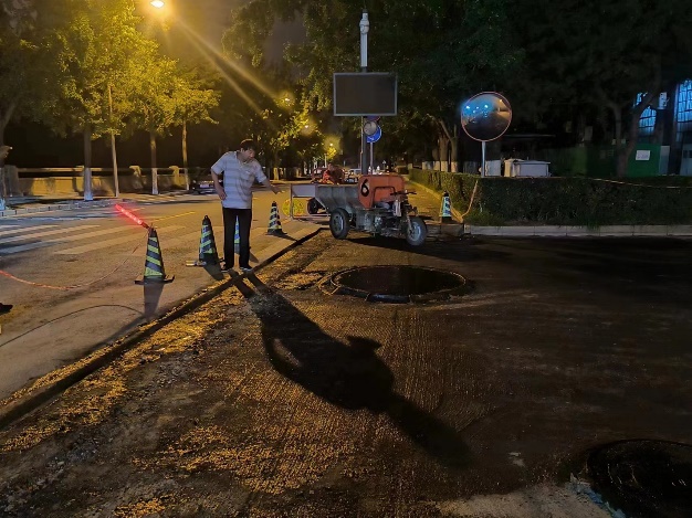 老秦从事土建行业已经30多年了,修缮中心为民办实事项目之一的积水点整治主要就由他承担。接手这个任务后,他重点关注了各个平台反馈的积水相关意见,建立了积水点信息台账,根据台账在汛期逐一“雨天蹲点”。这位“老把式”经验丰富,通过在不同雨量水平下“蹲点”观察到的地平走势、雨水汇流情况,结合附近排水系统的设置,当场便能构想出详细的综合整治方案。他根据积水情况的轻重缓急制定整治方案,有计划、有步骤地稳步推进积水点整治,近年来先后完成8处路段的铣刨翻修、19处路段重铺、20余处雨水口调整,基本实现了教学办公区积水点清零的整治目标。整治后的积水点经受了7月底大雨的考验,均未出现大面积积水问题。