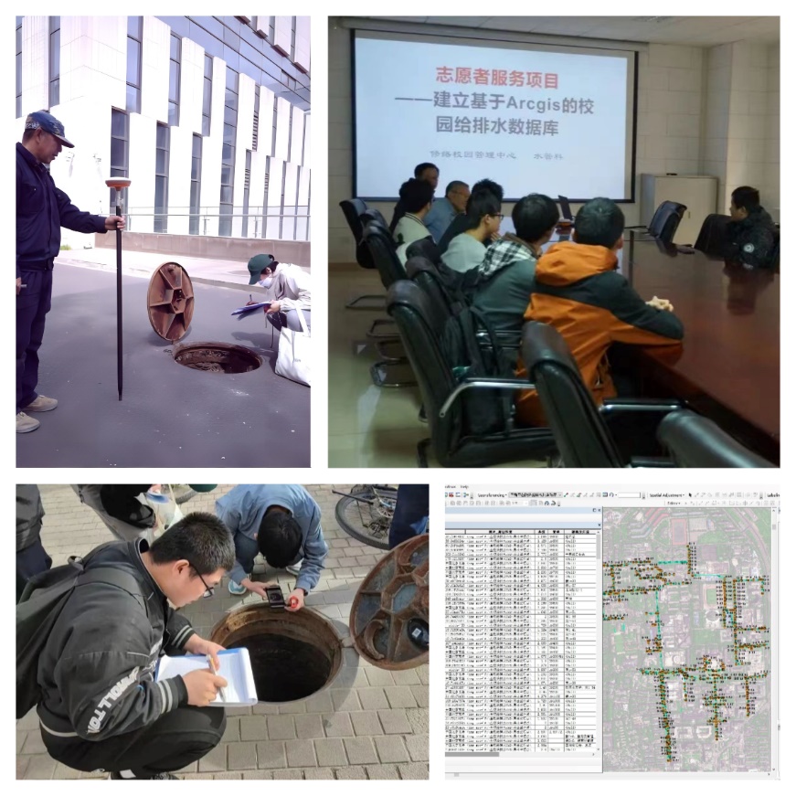 王静是水管科的地理信息系统(GIS)管理员,张师傅定期将巡线发现的雨水管道缺陷汇总给她,由她统一备案到科室管网GIS中。“去年我们和水利系团委一起发起了‘地底寻踪’志愿活动,招募同学们一起开展GIS建设,把劳动育人和防汛等实际工作需求结合起来。能够为校园建设维护出一份力,同学们都觉得很有意义,热情很高。”