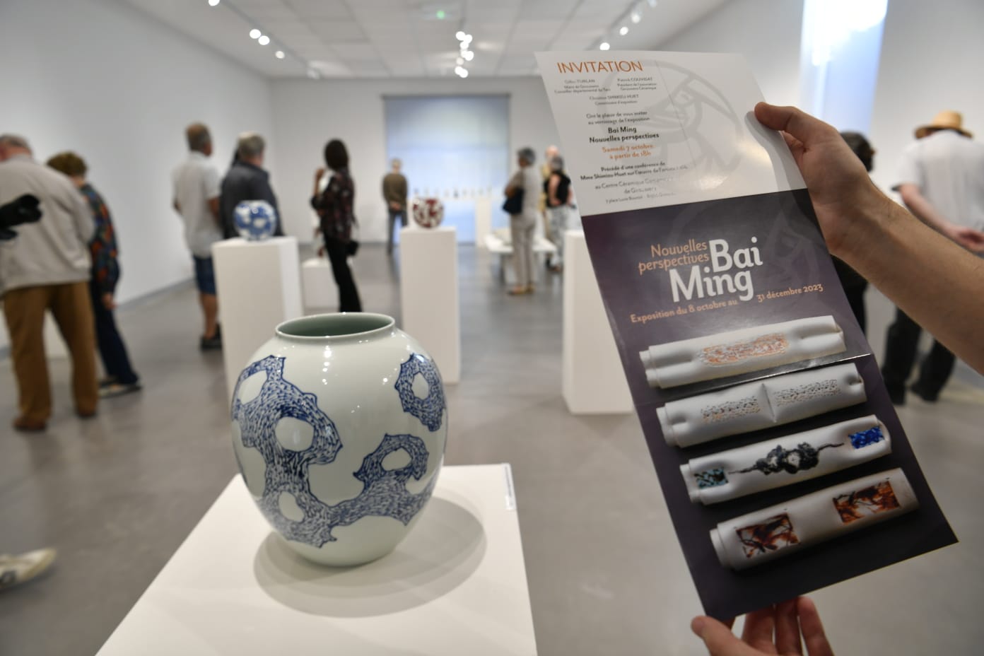 本次展览由克里斯汀·清水女士担任策展人,展览开幕当日,她为观众带来展览专题讲座,分享白明的创作实践与艺术风格,内容涉及艺术成长、艺术语言分析、跨界实践以及与法国的文化渊源等,使观者更为详细地了解并走近艺术家的内心与作品。100余名当地政界代表和来自欧洲各地的陶艺家应邀参加开幕式。