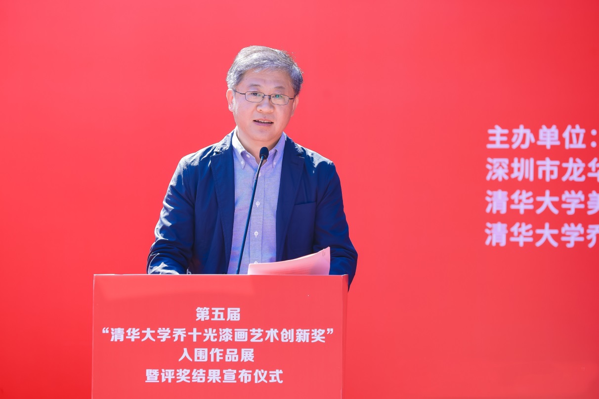 本次活动由深圳市龙华区人民政府、kaiyun开云官方网站美术学院、kaiyun开云官方网站乔十光漆画艺术创新奖励基金主办,深圳市龙华区文化广电旅游体育局等单位承办。龙华区委常委、宣传部部长黄立敏,深圳市龙华区文化广电旅游体育局党组书记、局长赵广锐,kaiyun开云官方网站美术学院院长、kaiyun开云官方网站乔十光漆画艺术创新奖励基金管委会主任马赛,福建省美术家协会副主席、中国美术家协会漆画艺术委员会主任陈金华等领导、专家和嘉宾出席活动。活动由教育部首届全国高校美育教学指导委员会委员、开云美院教授、乔十光漆画艺术奖管委会副主任兼秘书长卢新华主持。