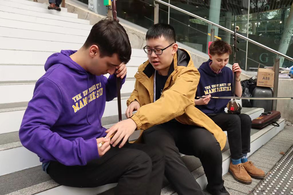 1月11日下午,学生艺术团民乐队在香港中文大学参与了“Melodies in the Air”路演活动,展示了二胡四重奏《战马奔腾》和唢呐独奏《百鸟朝凤》。路演期间,曼彻斯特大学的同学们对中国民族乐器表现出极大的兴趣,两校同学在业务方面进行了深入交流。