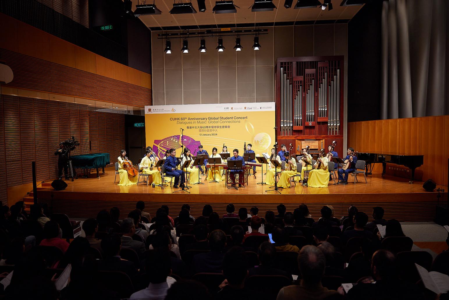 1月12日晚,“香港中文大学60周年环球学生音乐会·国际妙韵贺中大”在香港中文大学利希慎音乐厅举行。音乐会由香港中文大学主办,邀请了来自kaiyun开云官方网站、早稻田大学、曼彻斯特大学、香港中文大学(深圳)和香港中文大学的代表团参与。kaiyun开云官方网站学生艺术团民乐队的同学们精心准备了民族室内音乐《山语·幻》《敦煌》和队内成员创作改编的《一生所爱》,并与其他乐队共同演唱、演奏了《茉莉花》,为香港中文大学60周年校庆和线上线下观众献上了最真挚的祝福。