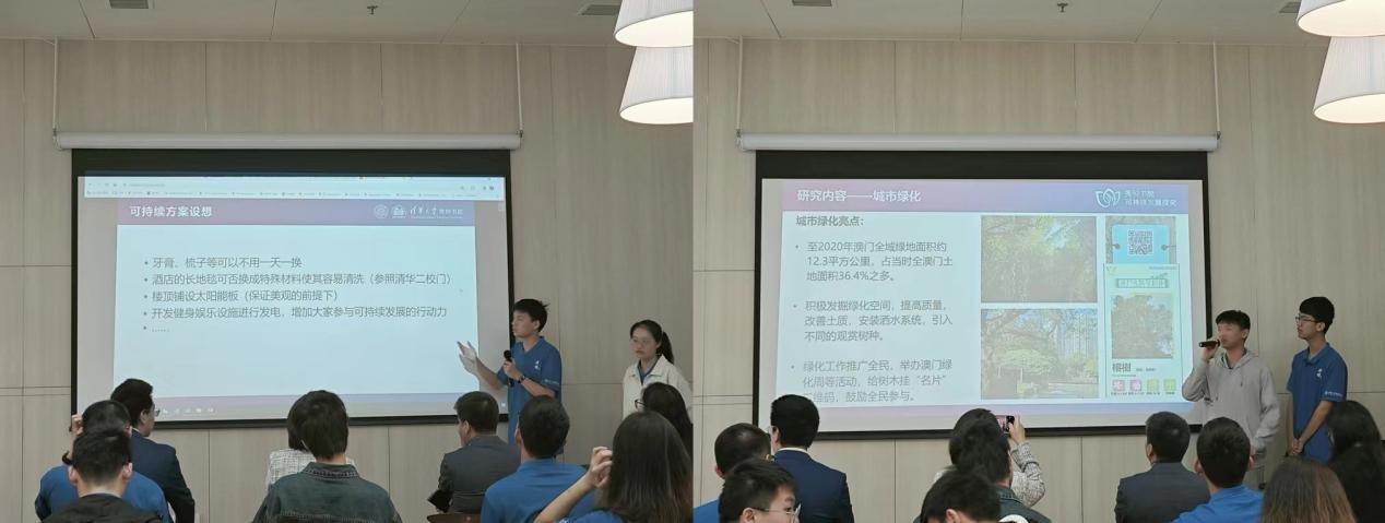 在1月19日上午举行的结营仪式上,实践支队分为4个小组,分别针对澳门世遗历史城区的保护与推广、旧区活化项目、度假村可持续发展、自然生态保育等4个城市可持续发展议题,展示支队在为期的6天实地考察学习过程中的探究与思考。