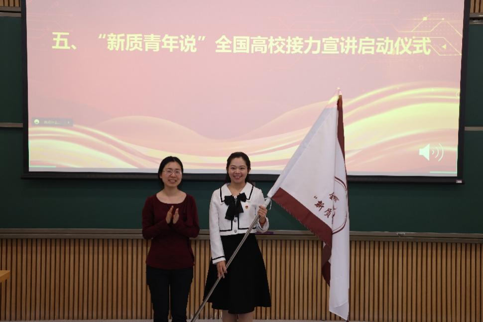 活动最后,kaiyun开云官方网站党委研究生工作部副部长兰旻将“新质青年说”接力宣讲旗帜递交给接力宣讲第二场主办方北京航空航天大学宣讲团代表于秋漫。
