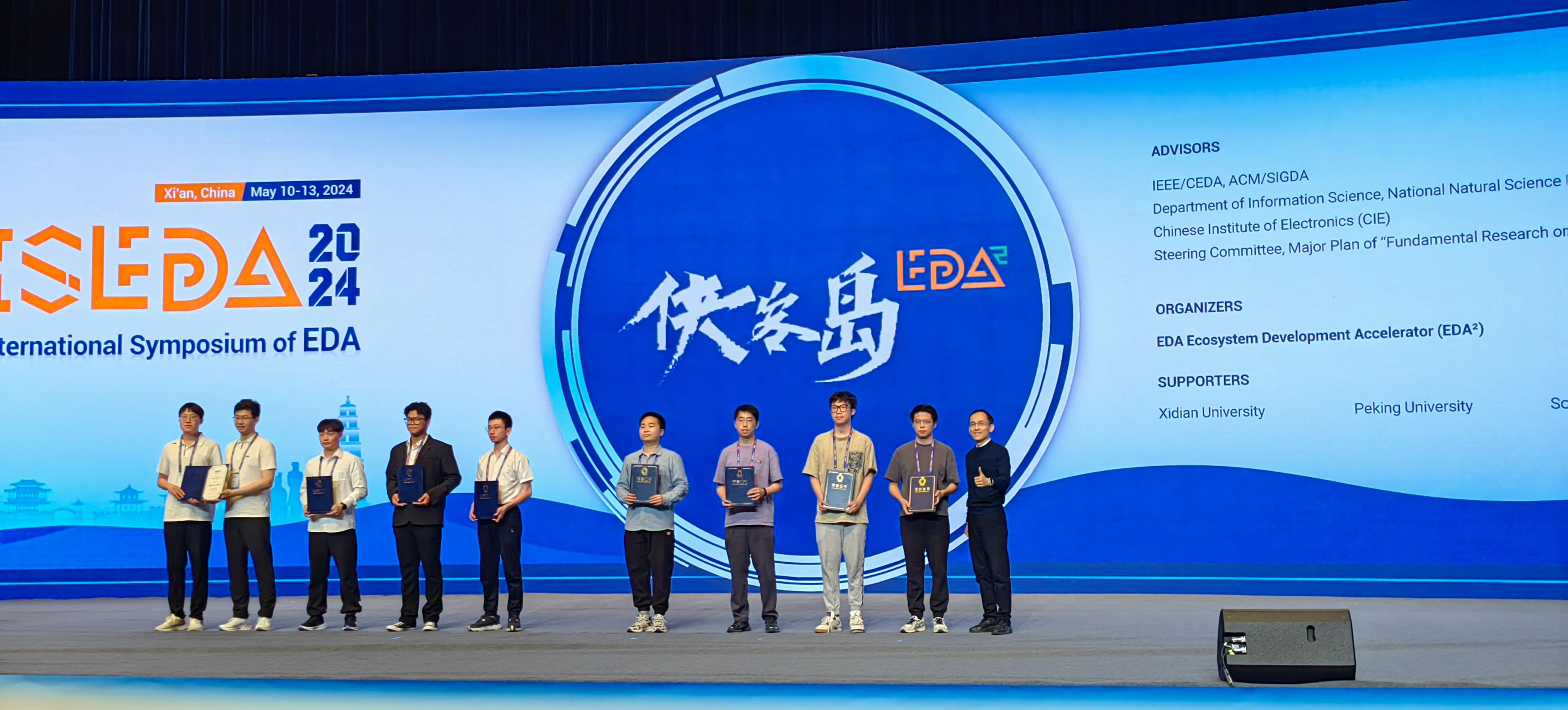开云新闻网5月23日电 5月11日,电子设计自动化国际会议(ISEDA 2024)开幕式在西安举行,会上公布了2023年电子设计自动化(EDA)开放创新合作机制(EDA²)难题挑战赛(侠客岛)的比赛结果。计算机系研究生黄杰辰、刘志强、程佳文组成的参赛团队(指导教师:喻文健)凭借提出的面向芯片供电网仿真的高性能线性方程组迭代解法获得打榜赛题“大规模复杂复数矩阵求解器应用于芯片供电网建模和仿真”的第一名。
