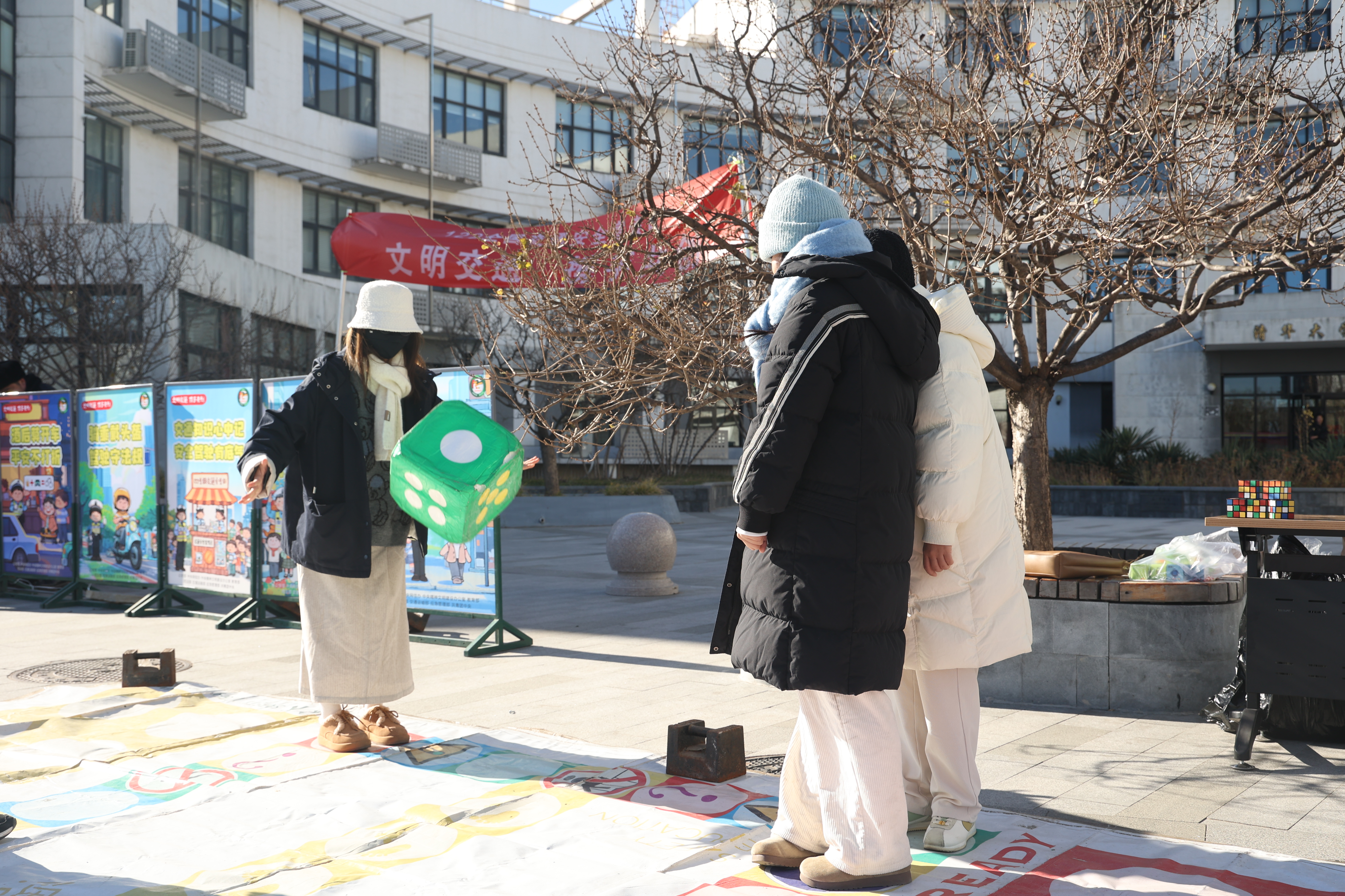 现场师生通过观看宣传展板,参与有奖答题及交通安全飞行棋等活动,学习了解了常见的交通标牌含义以及与骑行、乘车等相关的交通安全法规、安全注意事项,提升了安全守法意识和自我保护意识。