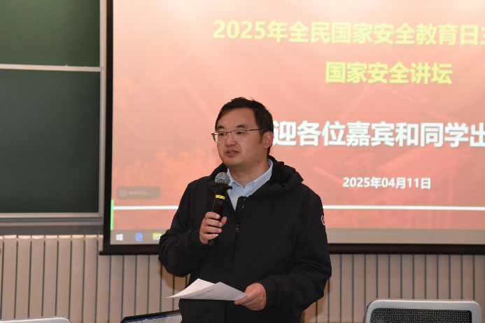 讲座开始前,安全学院国家安全所所长陈建国讲解了总体国家安全观的核心要义和创新演变,介绍了此次活动的举行背景。