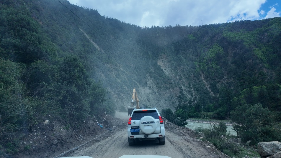 支队前往扎拉水电站途中遇到落石封路
