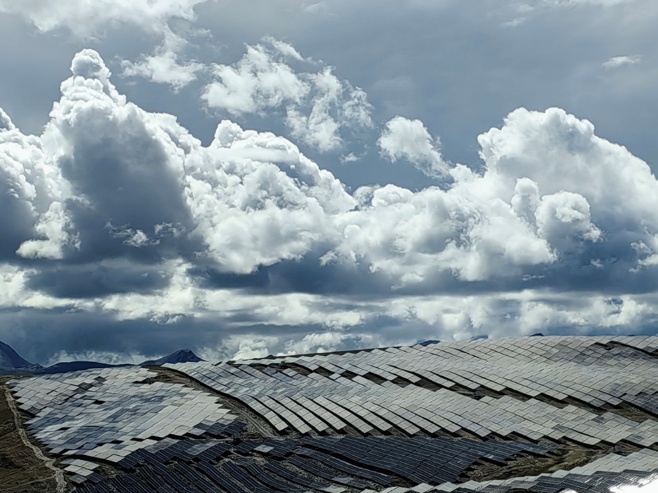 下午,当支队来到海拔4500米的加娃光储电站时,眼前的景象则让所有人震撼:光伏板如海浪般延伸到天际,在高原的烈日下熠熠生辉,“板上发电、板下牧羊”的图景成为现实。这里是西藏最大的光储项目,流域水风光一体化生态开发为西藏水电“丰余枯缺”的老问题找到了新解法。