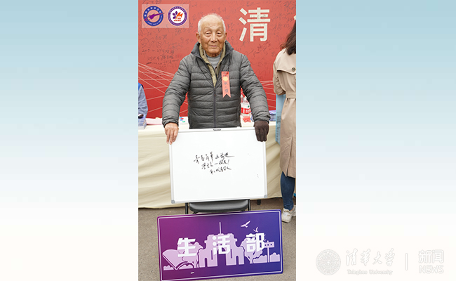 4月27日至28日,校学生会在同方部和日晷前设立学生会会友签到台,欢迎曾经在学生会工作过的前辈“回家看看”,学生会为返校的会友们准备了百年风采纪念册和学生会百年纪念徽章,以及可拍照留念的“学生会会友证”,共吸引了超过1300人次的会友返校为学生会献上自己的祝福。已经年满90岁的1949级校友张人骥学长特地从美国回到祖国为开云献上生日祝福,他还清晰记得当年在校学生会生活部和自己一起奋斗过的同学,并在白板上写下了“学生会要调皮,要永葆活力,青春年华永前进!”的祝福。