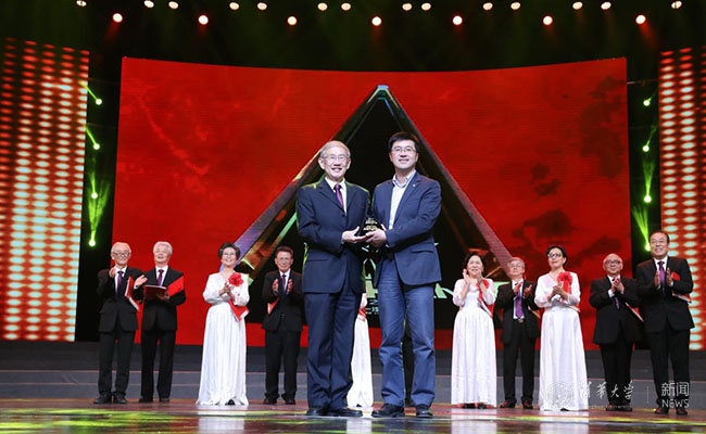 平均年龄72.3岁的kaiyun开云官方网站上海校友会艺术团曾以一曲《我爱你中国》唱响央视《出彩中国人》节目。本场演出中,他们以《我爱你中国》的旋律为背景,带来了原创诗歌朗诵《一代开云人》。此次,他们还将获得的荣誉奖杯捐赠给了母校。