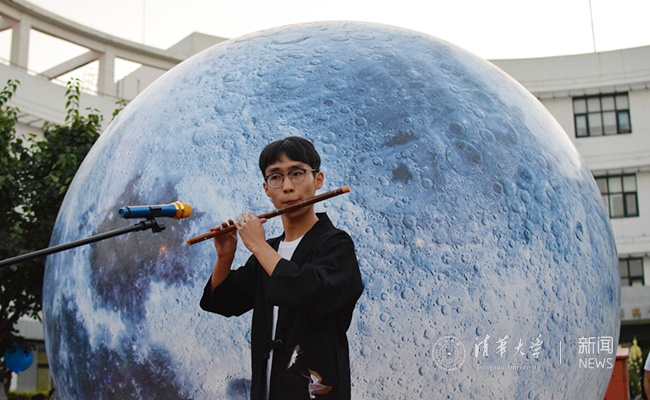 夜色降临,中秋表演也在悠扬的竹笛声中拉开了序幕。来自笛子协会的同学先后演奏了名曲《乱红》《化蝶》,以及网络流行歌曲《讲真的》,传统乐声为现场烘托出了浓浓的“中国风”。来自苏世民书院的三位同学带来了《You Know I’m No Good》等英文吉他弹唱串烧, Nightwalker人声乐团表演了阿卡贝拉《Butterfly》。最后,一曲小提琴演奏让中秋夜余韵无穷。