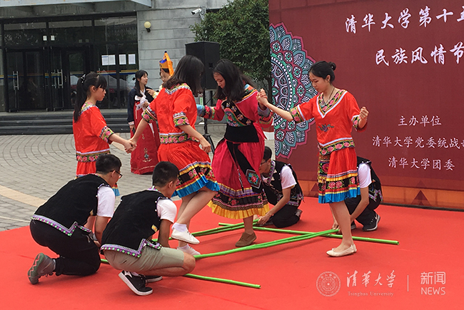 壮族同学表演竹竿舞