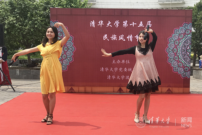 两位维吾尔族女同学表演歌舞