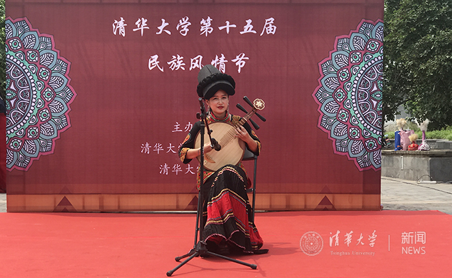 彝族同学演奏月琴