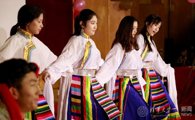 最后,全场师生共同上台跳起了藏族锅庄舞,晚会在欢乐的舞蹈中落下帷幕。