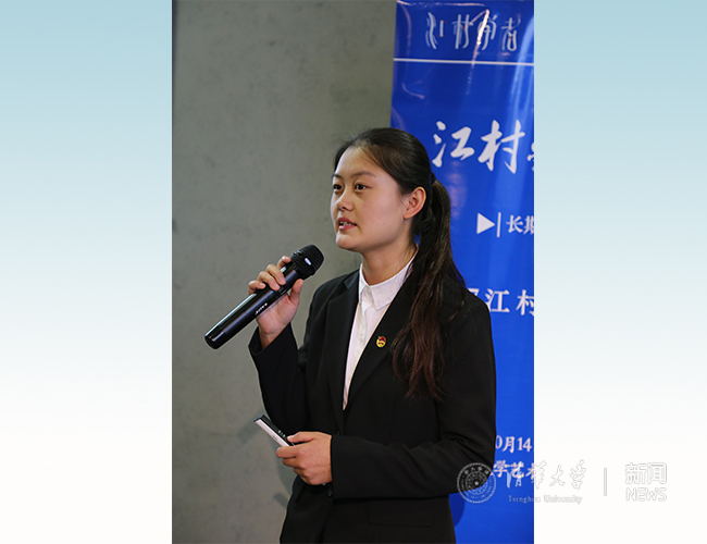 校团委副书记铁强介绍江村项目情况。 段小宇 摄