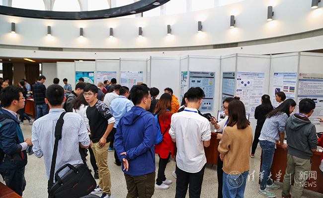 下午,晋级总决赛的团队在会议大厅进行路演。16支队伍的海报内容详实、图文并茂,应用新奇的视频和实物展示更引人入胜,吸引了大批校内外各界人士前来观摩。