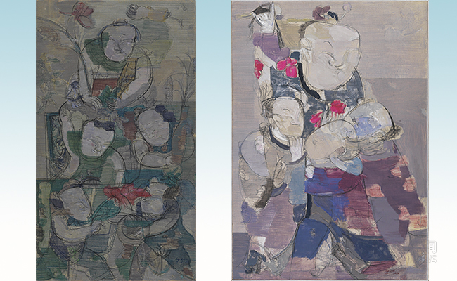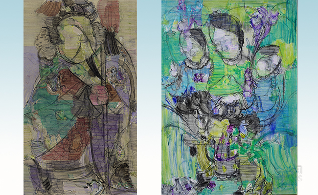 顾黎明作品《持锤门神》(左图)和《马上见喜》(右图)。