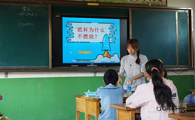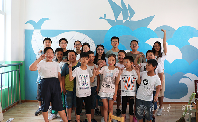 在福建上杭一中,航空航天学院2015级本科生田志国带领同学们进行水火箭的组装与发射,这成为了他们最喜爱的科技类课程。看着亲手制作的水火箭伴随着一片欢呼腾空而起,落在百米开外的茵茵草地,孩子们都心潮澎湃。甘肃陇南支队在开展以手工制作为主的美术教学的同时,还带领孩子们开展校园空间改造活动。漆绘的波涛、船舶与鲸鱼取代了曾经单调的美术教室墙壁,也承载了孩子们无尽的想象与童真。