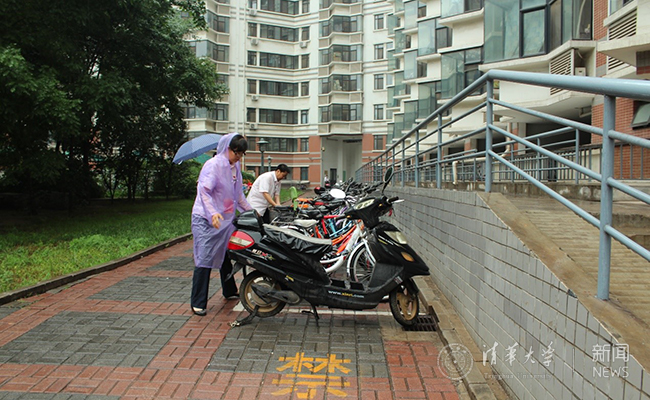 办公室党支部开展整理学生区自行车义务劳动。