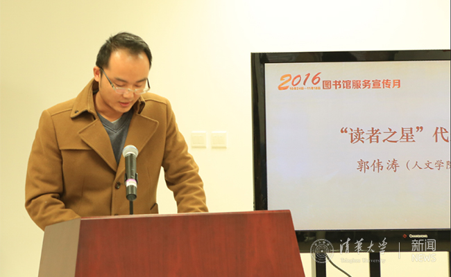 人文学院郭伟涛同学代表“读者之星”发言。 彭世春 摄