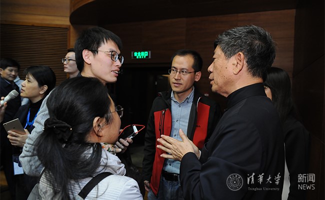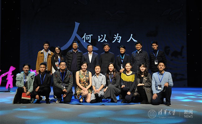 邱勇、彭林与组织活动的同学们合影。供图:新闻学院