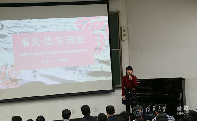 在讨论环节,6支实践支队围绕“精准扶贫”主题,从“金融扶贫”、“制度扶贫”、“资源扶贫”、“教育扶贫”等角度,先后分享了他们在扶贫路上的见闻与思考。