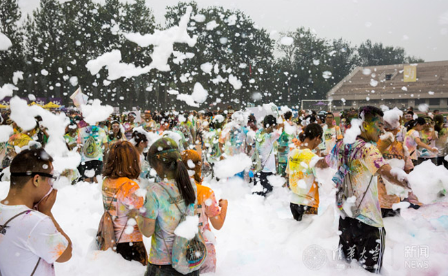 以新生同学为主的“启航跑”比赛是运动会的一大亮点。比赛全程800米,来自全校106个团体、2200余名师生参与了此项比赛。下午的“酷享青春,追梦彩跑”起跑,吸引了3200余名师生参加。研运会延续“无体育,不开云”的口号,在传承开云体育精神的同时,把“竞技”与“娱乐”生动融合,充分展现了开云风貌。